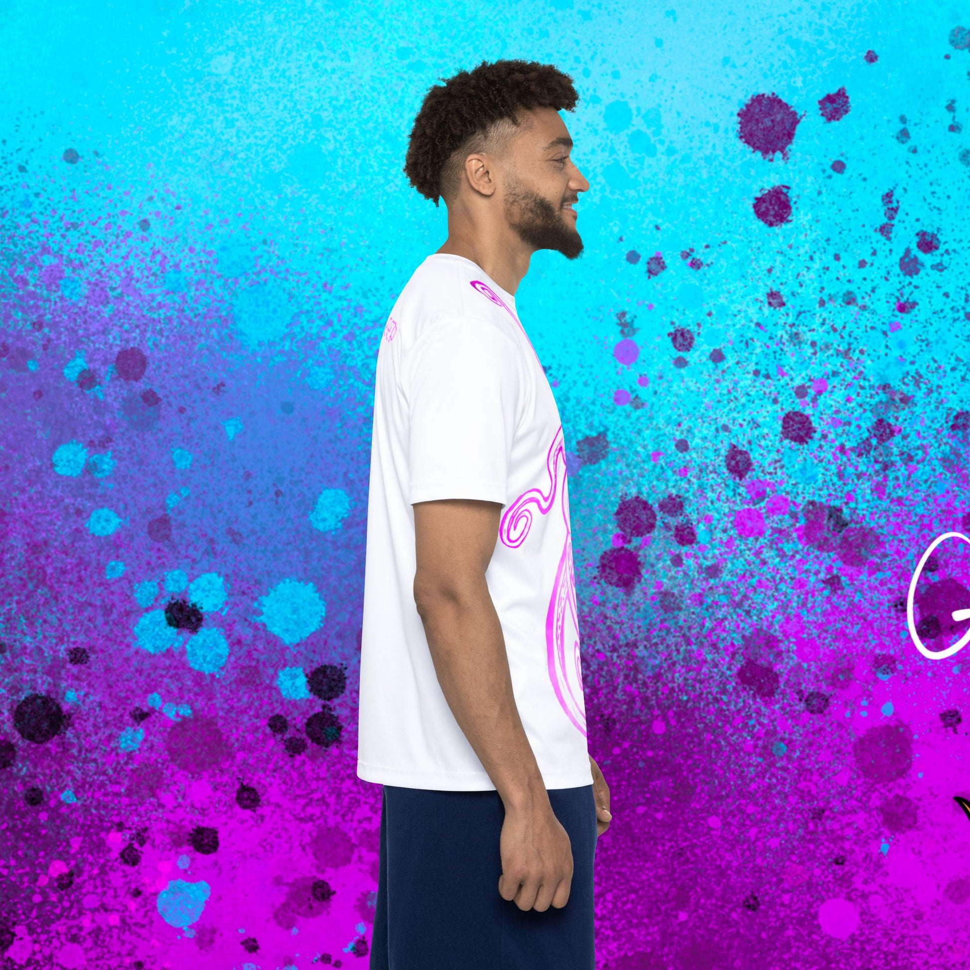 Create unique sports tees with this stretchy, durable, all-over-print jersey for men. Made with 100% moisture-wicking performance polyester, this tee keeps your customers dry during peak performance and helps them look incredible whether sweating it out at the gym or lounging with friends.